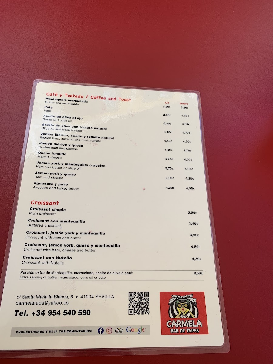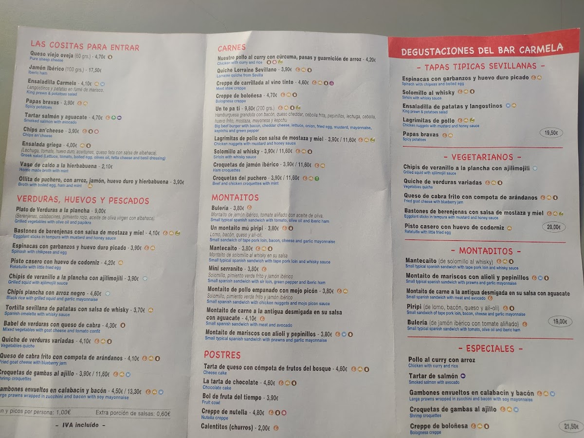 Welcome to Bar Carmela, an exquisite tapas bar nestled in the heart of Casco Antiguo, Sevilla. This charming spot captivates both locals and tourists alike with its vibrant atmosphere and delectable offerings. The menu features a delightful variety of carefully crafted tapas, from the standout salmon tartare with avocado to the savory croquettes and grilled calamari. Vegetarian options are plentiful, ensuring everyone can enjoy a satisfying meal.